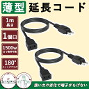配線隠し 延長コード 1m 15A 125V 2本 ブラック 業務用 長い PSE認証 耐寒性 耐久性 屋外用 エコ 電源コード 電源タップ 二重被覆 室内 延長コード ソフト スイングプラグ トラッキング防止 電源増設 室内型