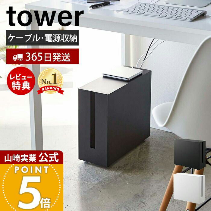 【365日出荷&当店限定特典付き】山崎実業 キャスター付きケーブル収納ラック タワー tower 公式 デスク下 ケーブル収納 ボックス 大型 スリム 電源タップ ハードディスク コードケース 収納 キャスター 放熱製 5403 5404