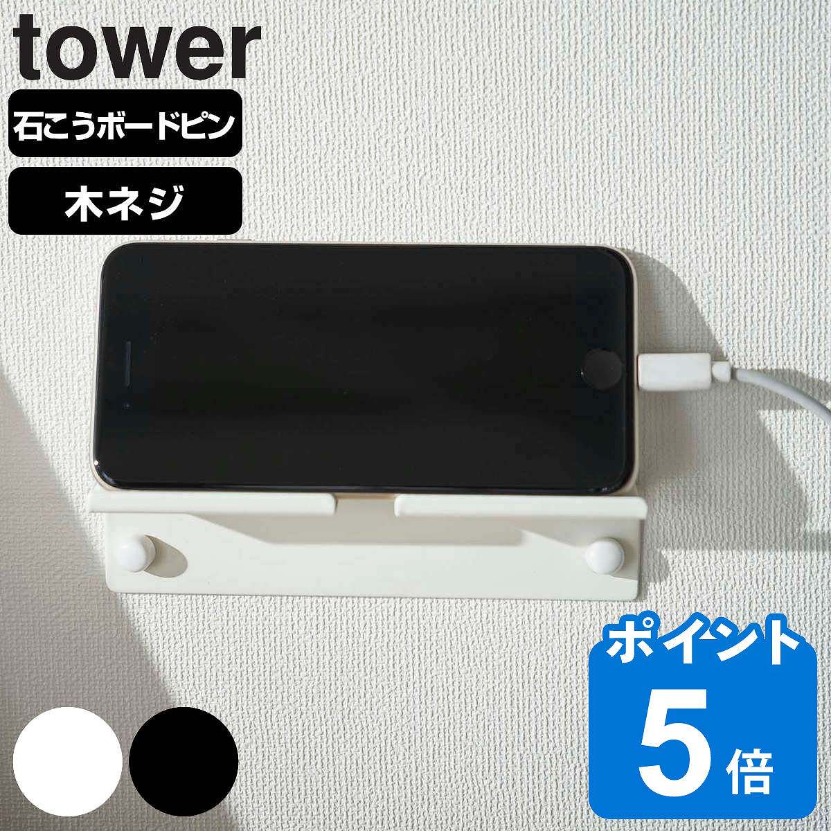 山崎実業 tower ウォール スマートフォンホルダー タワー ( 4903208058957 タワーシリーズ スマホスタンド タブレットスタンド ipadスタンド 壁面 収納 充電 スタンド ホルダー 棚 台 ラック ホワイト ブラック 携帯 スマホ )