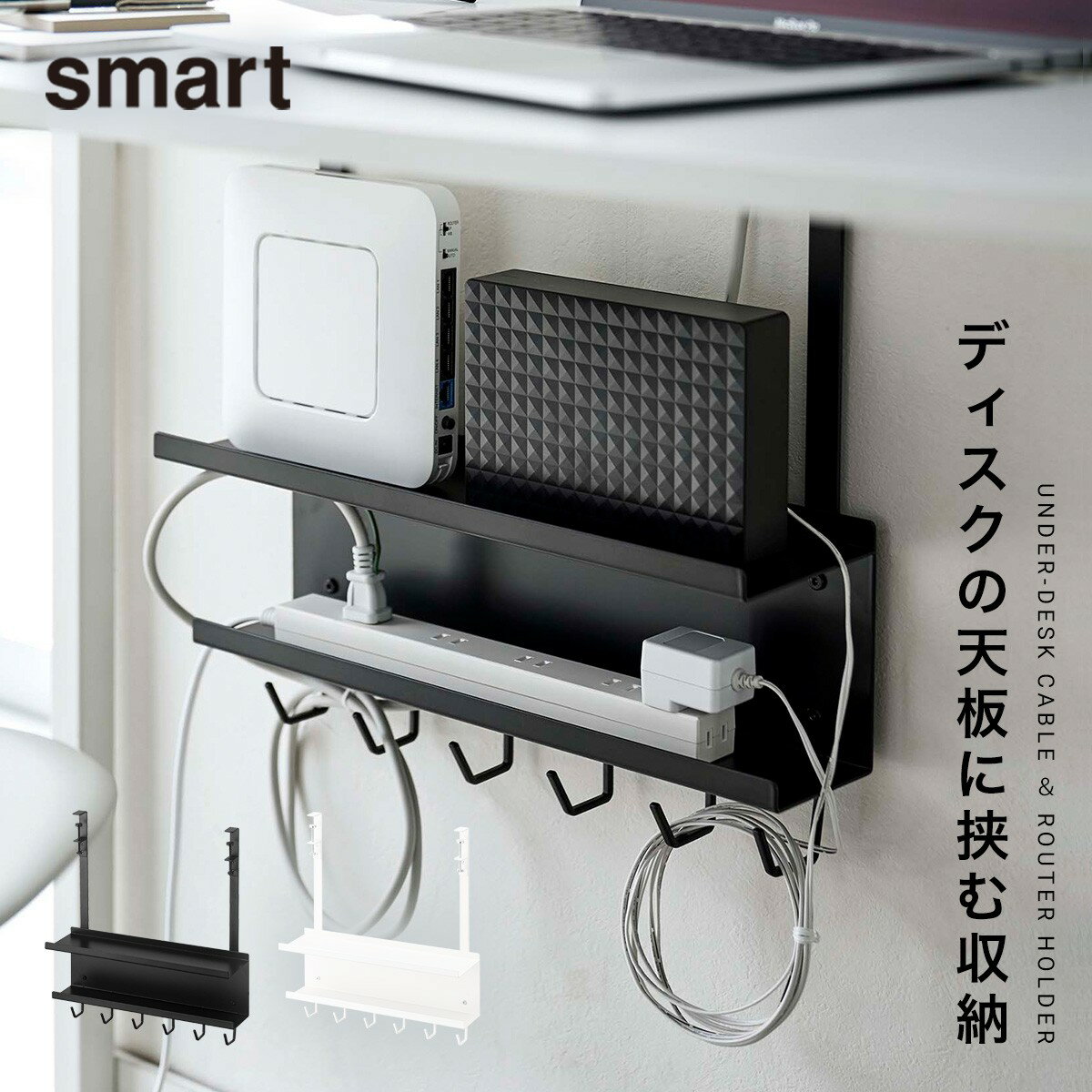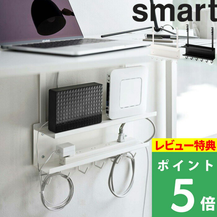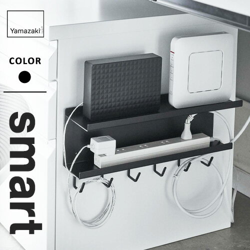 smart デスク下ケーブル&ルーター収納ラック スマート 【鴨居フック 引っ掛け収納 コード整理 ラック デスク下整理 ルーター収納 電子機器収納 収納 整理整頓 浮かせ ケーブルまとめ コード引っ掛け ホワイト 5461 ブラック 5462 山崎実業 YAMAZAKI】