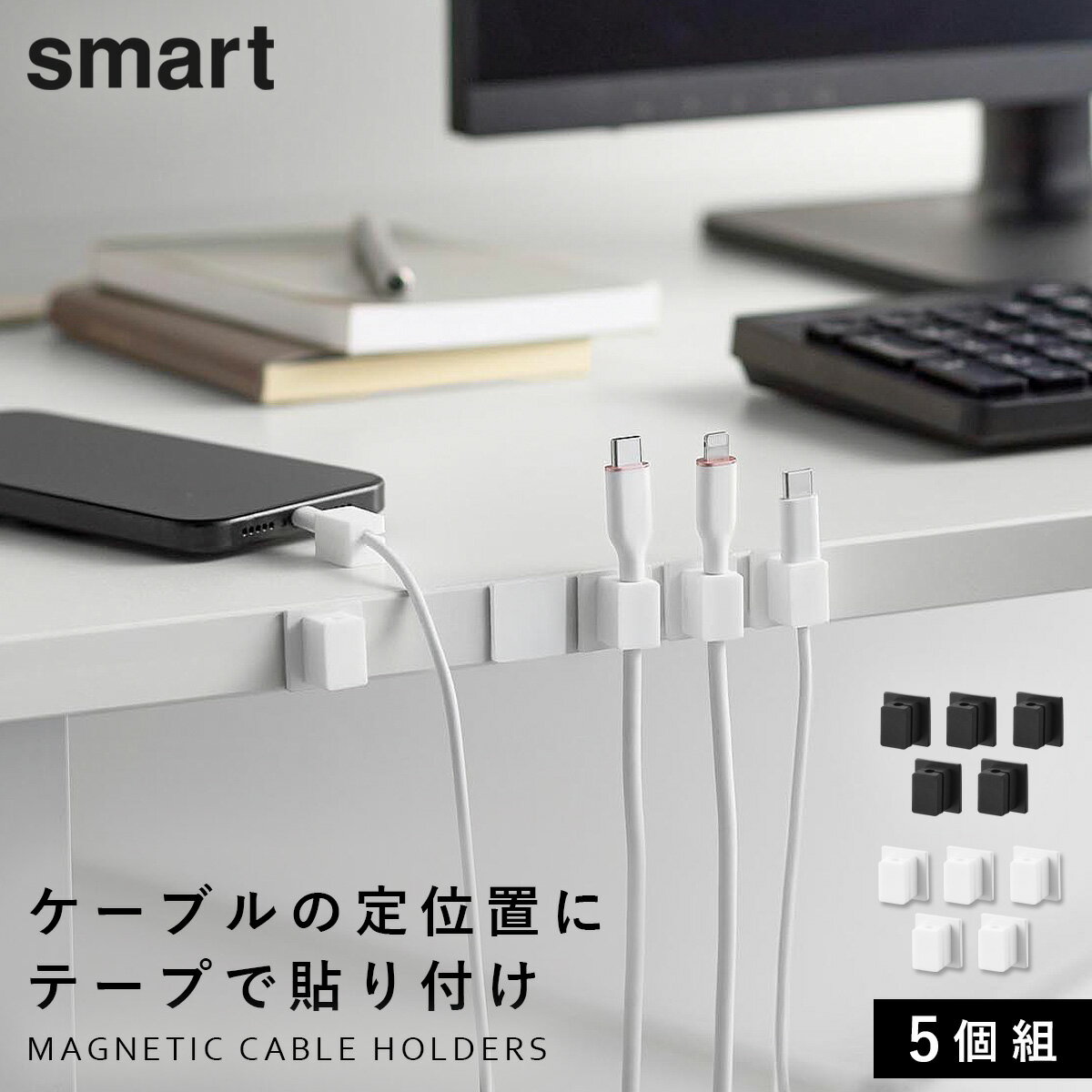 テープで貼りつけるマグネットケーブルホルダー スマート 5個組 山崎実業 smart ケーブル 整理 フォルダー 固定 壁 おしゃれ モノトーン ホワイト ブラック 10193 10194
