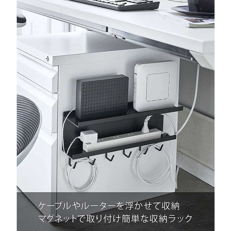 山崎実業 smart スマート マグネット ケーブル&ルーター収納ラック 選べるカラー: ホワイト / ブラック | デスク収納 マグネット 収納ラック デスク下 磁石 貼り付け ピン取り付け 整理 モデム