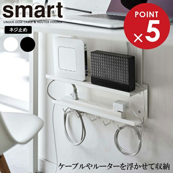 山崎実業 smart スマート デスク下 ケーブル&ルーター収納ラック 選べるカラー: ホワイト / ブラック | デスク収納 デスク下 収納ラック 浮かせる 収納 PC周り 収納 整理 ネジ式 モデム
