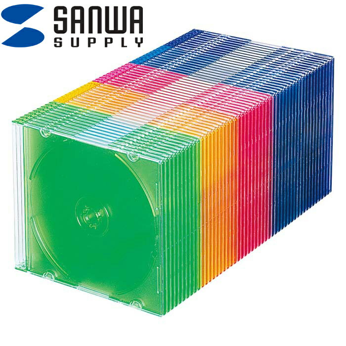 (LINEクーポン有)サンワサプライ FCD-PU50MXN2 Blu-ray・DVD・CDケース(スリムタイプ・50枚セット・5色ミックス)