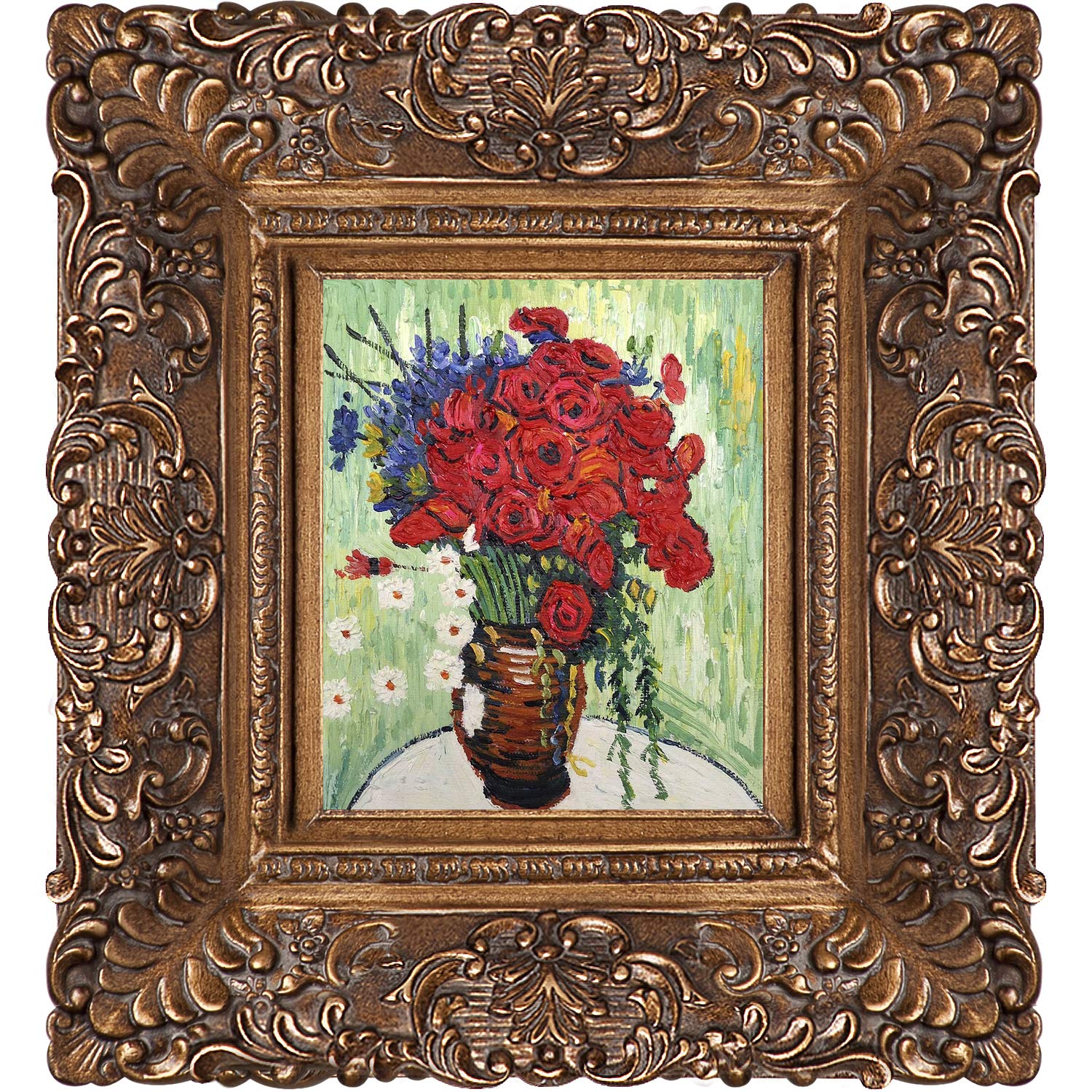 La Pastiche 花瓶 デイジーとポピーとバーゲオンゴールドフレーム入り油絵 19.5インチ x 17.5インチ マルチカラー