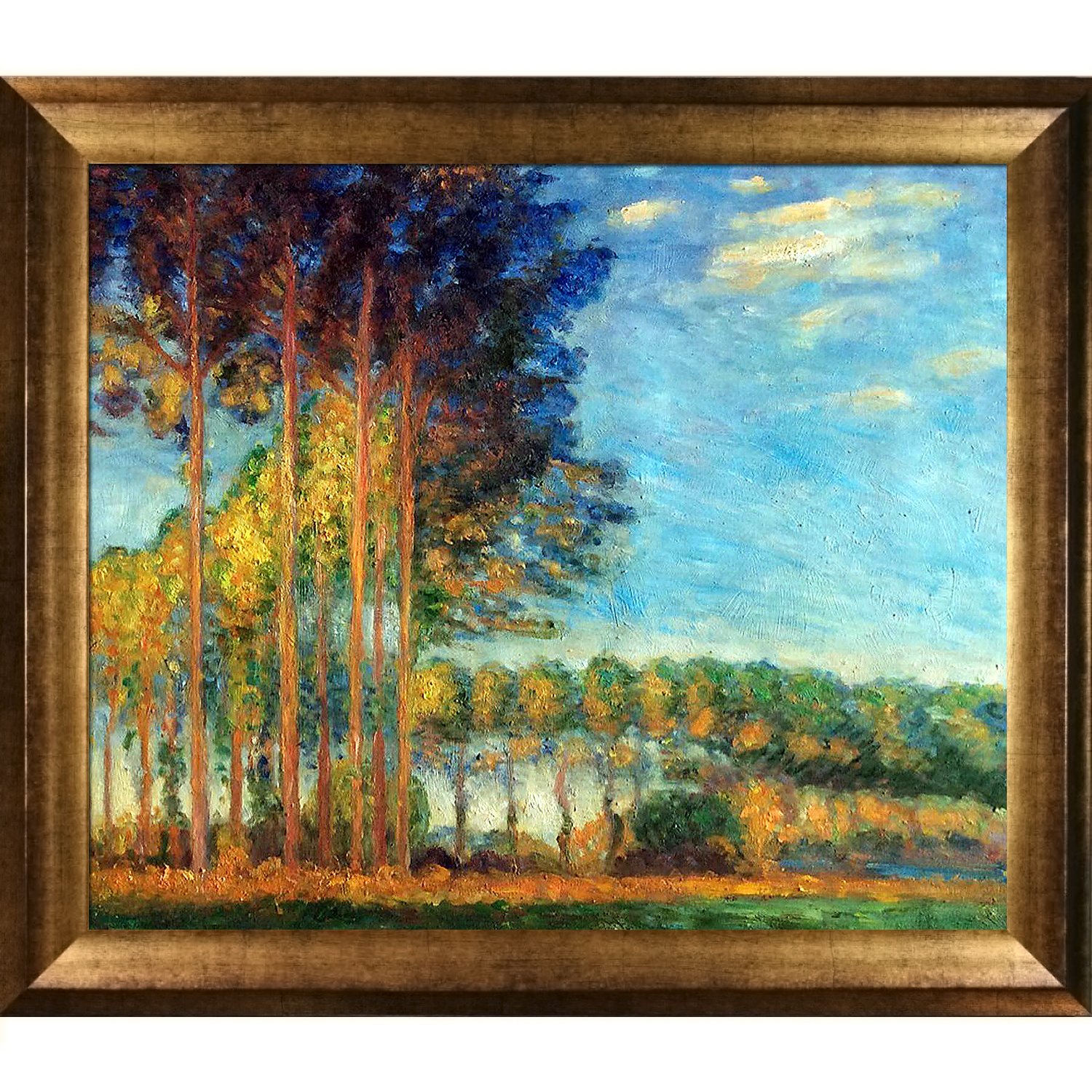 overstockArt Poplars on The River Epte、Seen from The Marsh with The Marsh with Florentine Gold Framed 油絵、78.74cm x 68.58cm 29 x 25 MON4255-FR-994620X24