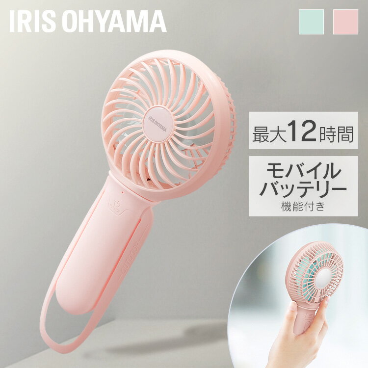 ハンディファン 扇風機 おしゃれ アイリスオーヤマかわいい 充電式 モバイルバッテリー 卓上 LEDライト 風量調節 夏 涼しい 持ち運び便利 ハンズフリー キャンプ アウトドア 熱中症対策 熱さ対策 パステルカラー JHFBL-01