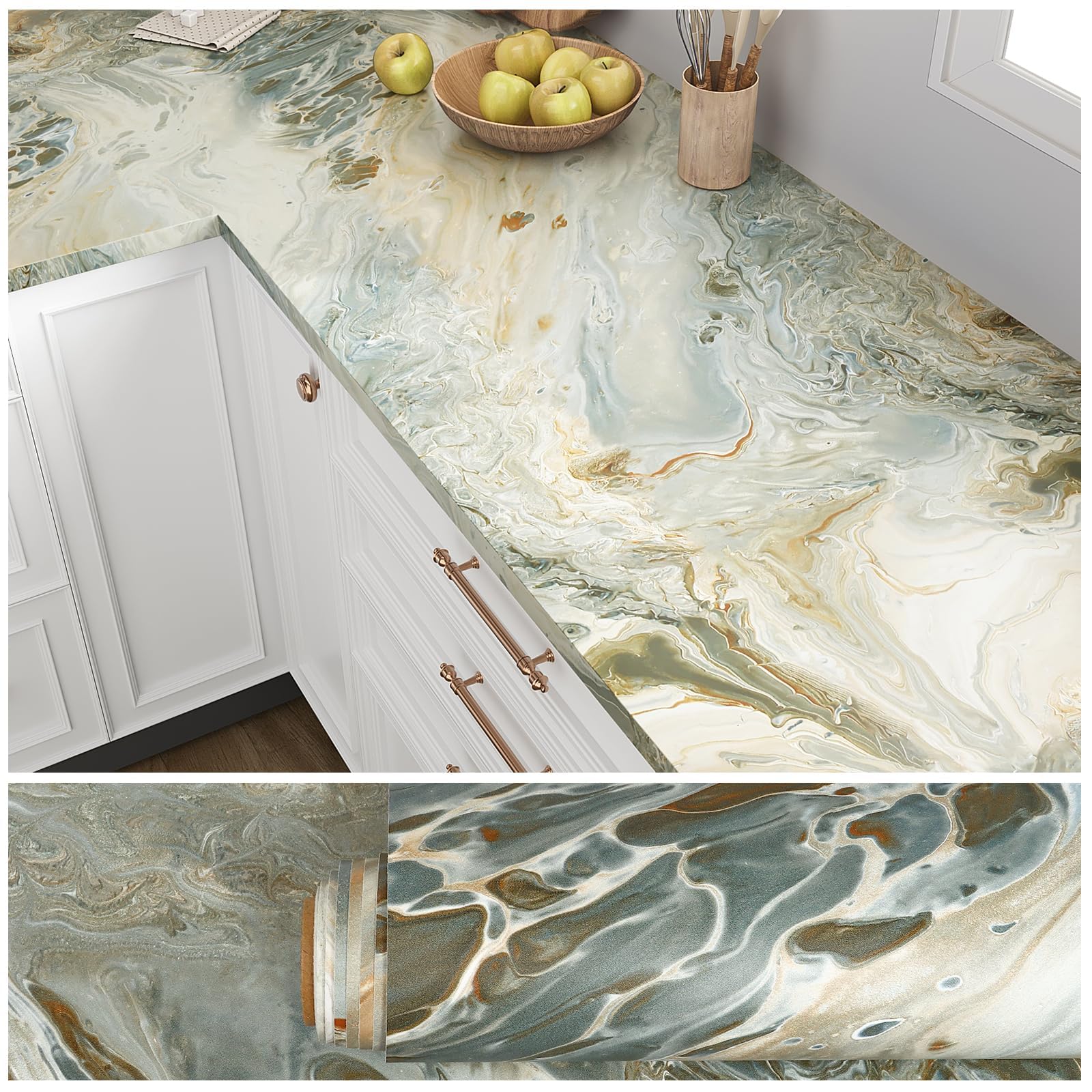 【送料無料】VEELIKE 大理石リメイクシート 壁紙シール 貼る壁紙 40x300cm 剥がせる 耐熱防水 防油防汚 厚手 のり付き カッティングシート キッチンパネル 浴室 シンク 家具 天板 テーブルシー 色:グレー、ベージュ、ゴールドのマーブル柄、サイズ:幅40 cm x 長さ3 m