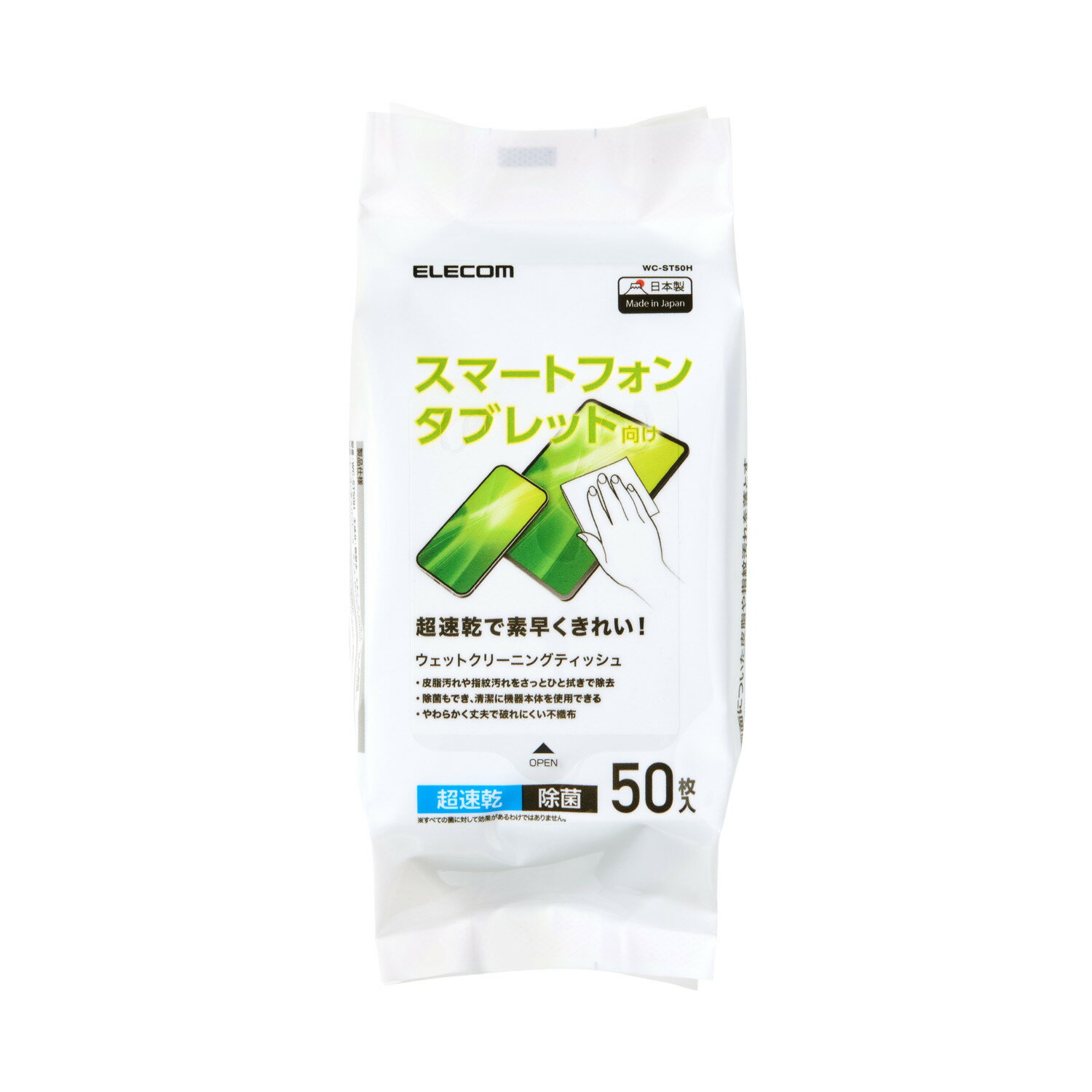 セール期間中ポイントUP![ELECOM]ウェットティッシュ クリーナー 50枚入り 除菌 アルコール 超速乾 【 スマホ タブレット 画面 等対応 】 WC-ST50H/WCST50H