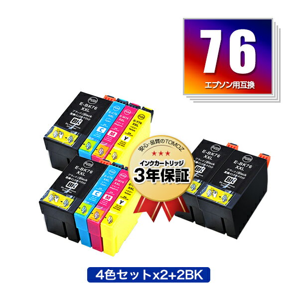 IC4CL76×2 + ICBK76×2 お得な10個セット エプソン用 互換 インク 宅配便 送料無料 あす楽 対応 (IC76 ICC76 ICM76 ICY76 PX-S5080R1 PX-M5041F PX-M5080F IC 76 PX-M5081F PX-M5040F PX-S5040 PX-S5080 PX-M5040C6 PX-M5041C6 PX-M5040C7 PX-M5041C7 PX-S5040C8 PXM5041F)