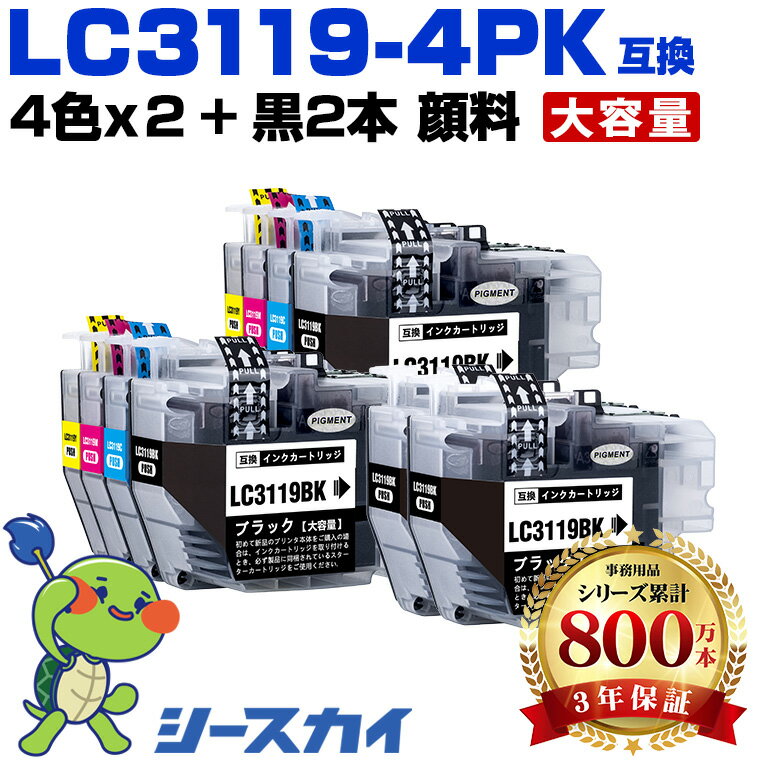 【ポイント20倍★さらに全品12%OFFクーポン】 ブラザー用 LC3119 LC3119-4PK×2 + LC3119BK×2 10個セット 残量表示機能付 互換インクカートリッジ 高品質 純正と同じ容量 3年保証付き 顔料 LC3119BK LC3119C LC3119M LC3119Y MFC-J5630CDW MFC-J6583CDW