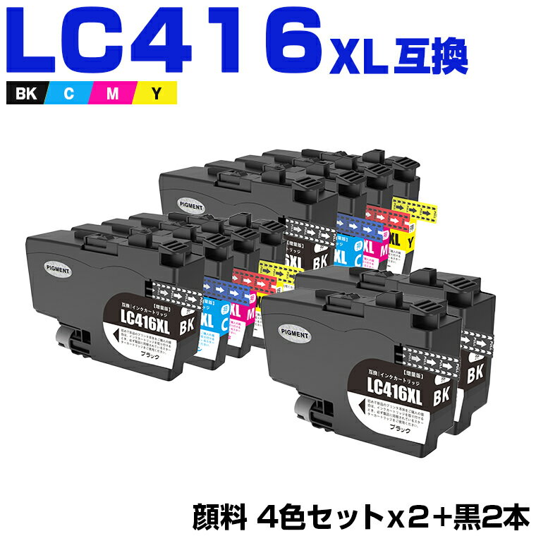 【全品P20倍★12%OFFクーポン】 LC416XLBK LC416XLC LC416XLM LC416XLY 4色セット×2 + LC416XLBK×2 顔料 大容量 お得な10個セット ブラザー 互換 インク (LC416 LC416XL LC 416 LC416BK LC416C LC416M LC416Y DCP-J4143N MFC-J4443N MFC-J4543N DCP-J4140N MFC-J4440N