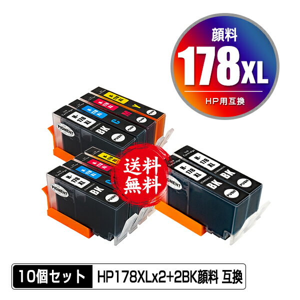 HP178XL 顔料 増量 4色セット×2 + HP178XL黒(CN684HJ)×2 お得な10個セット メール便 送料無料 ヒューレット・パッカー用 互換 インク 残量表示機能付 (HP178 HP178XLシアン CB323HJ HP178XLマゼンタ CB324HJ HP178XLイエロー CB325HJ Photosmart 5520 HP 178)