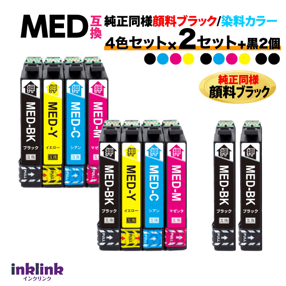 MED-4CL 互換インク 4色セット×2セット+BKx2個 10個セット 純正同様 顔料ブラック エプソン EW-056A EW-456A用 MED-BK MED-C MED-M MED-Y