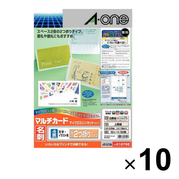 【送料無料】【まとめ買い】 エーワン マルチカード A4判2つ折タイプ4面 51079 10個セット - メール便発送