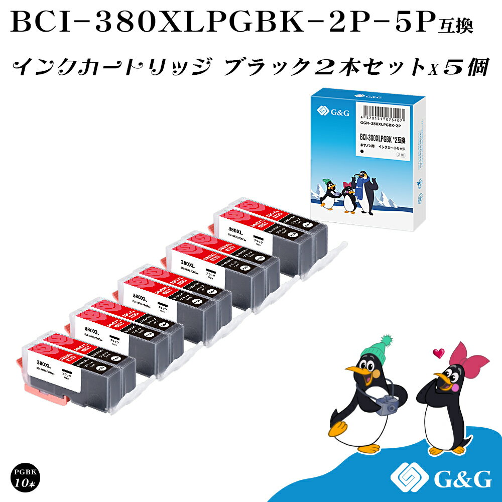 G&G BCI-380XLPGBK 黒10個セット ブラック 大容量 顔料 【残量表示対応】キヤノン 互換インク bci-381 bci-380xl 送料無料 対応プリンター: PIXUS TS8430 / TS8330 / TS8230 / TS8130 / TS7430 / TS7330 / TS6330 / TS6230 / TS6130 / TR9530
