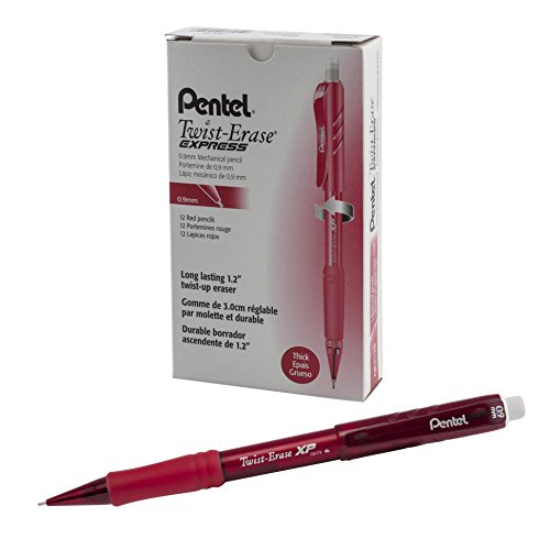 【中古】【未使用・未開封品】ぺんてる ツイストイレース エクスプレス シャープペンシル 0.9mm レッドバレル 12本入りボックス (QE419B)