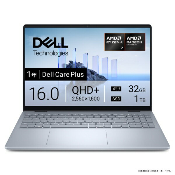 DELL|デル ノートパソコン Dell 16 Plus アイスブルー NCL76-FNC [Copilot+ PC /16.0型 /Windows11 Home /AMD Ryzen AI 7 /メモリ:32GB /SSD:1TB /2025年夏モデル]