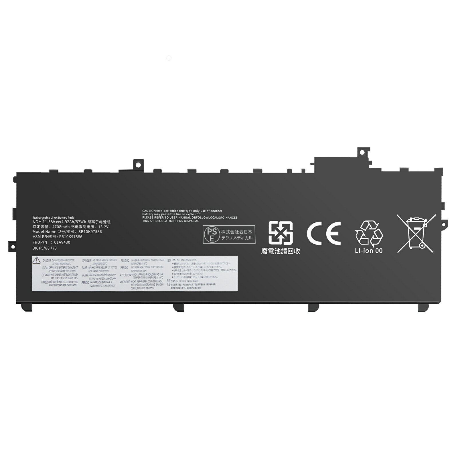【5倍ポイント】新品 LENOVO ThinkPad X1 Carbon (20HR0006JP) 互換バッテリー【4708mAh 11.58V】対応用 1年保証 高性能 PSE認証 互換バッテリパック YBM 1010 2025BM-XIJPA