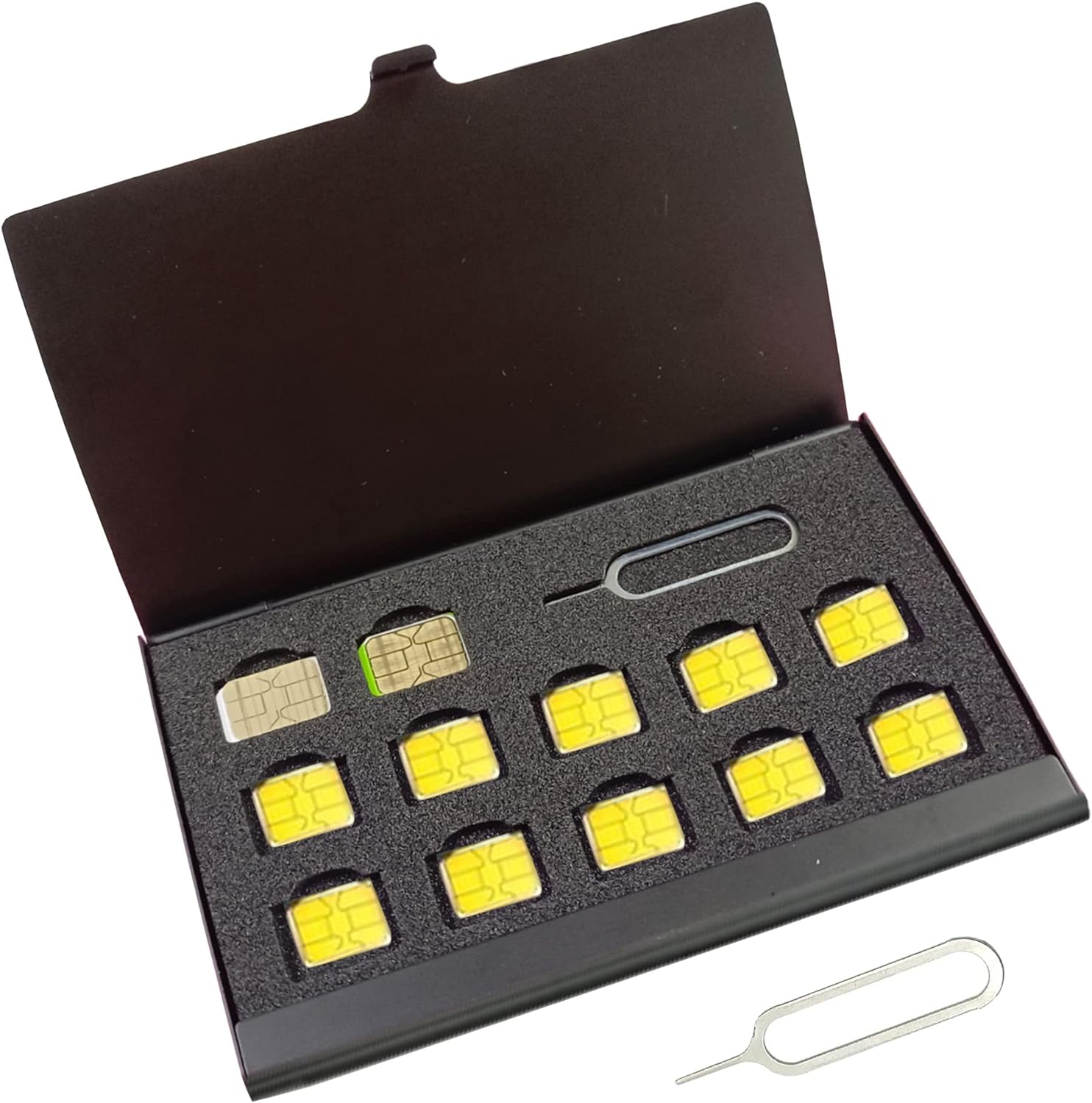 アルミSIMカードケース スリム ミニ SIMカードスロット 収納ケース Nano SIMカード12枚 ピンスロット1枚 SIMカード ブラック 12枚収納 持ち運び カードケース nanoSIMカード 誕生日 記念日 select ギフト プレゼント などに