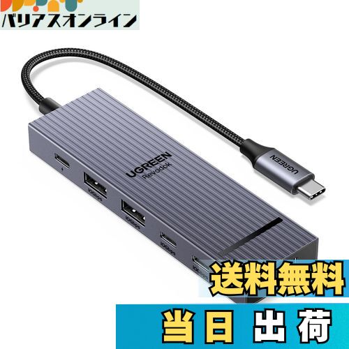 UGREEN Steam deck/Switch/Rog Ally/Legion Go用TVドック 9-IN-1 USB-Cハブ ドッキングステーション HDMI4K@60HZ 10Gbps高速転送 USb-A3.2*USB-C 3.2 1000Mbpsイーサネット 2*USB2.0ポート SD/TFカード読み取り 100W(出力85W) PD対【角度調整可能 スタンド】:このSteam deck/Switch用ドックには、2 つの折りたたみ可能なパネルで構成されるスタンドが付いています。 したがって、背面パネルがゲーム機の放熱口を塞ぐことがなくなり、放熱効果が大幅に高まります。ケームをスームズに楽しめます。【9-IN-1 Steam deck/Switch用ドック】このSteam deck/Switch用TVドックを使用すれば、Steam deck/SwitchなどをHDMIポートでテレビやモニターなどのワイドスクリーンに接続し、ゲームの実行や動画の再生など、ゲーム体験を充実させることができます。本製品のUSB-AとUSB-Cポートは、マウスやキーボード、ゲームパッドなどのデバイスと接続して多機能な操作ができます。PDのUSB-Cポートは100W高速充電にも対応しており、途切れのないゲーム体験を楽しめます。【10Gbps高速転送】: このSteam deck/Switch用ドックには、10Gbpsの転送速度を備えて、USB 3.2 Gen 2ポート(1A1C)を搭載します。 外付けモバイルハードドライブとUSBフラッシュドライブをサポートし、ゲームファイルを高速で転送だけでなく、 キーボード、マウス、ゲームパッド レシーバーなどの接続も対応し、また、遅延や干渉を効果的に軽減します。その上、TF/SDに対応のインタフェースを搭載します。【4K@60Hzの映像出力】HDMI2ポートは最大4K@60Hzの解像度をサポートし、2560*1440@60Hz、1920*1080@60Hzにも対応、より低い解像度との互換性があります。HDMIポートを通してSteam deckのゲーム画面をテレビやモニターに映し出すことができ、大画面でより良い映像のゲーム体験が楽しめます。 モニター画面へのHDMI接続は、基本的にラグなし。【幅広い互換性】: このハンドヘルド ゲーム ドックは、Steam Deck、ROG Ally、LEGION Go などのゲーム コンソールと広く互換性があります。 また、iPad Pro/Air、Surface Pro8、Go 3などのさまざまなUSB-Cデバイスと幅広く互換性があり、さまざまなニーズに対応します。【100W PD急速充電 】この Steam deck/Switch用ドックはPD対応USB-Cポートが付属しています、Steam deck/Switchの充電にとても便利です。オリジナルの充電器は45Wので、オリジナルの45W充電器を使用して1時間で51%充電します。 プレイと充電を同時に行うことで、ゲームを中断することなく、楽しむことができます。注意:PD充電ポートはデータ転送や動画転送をサポートしていません。【24ヶ月の期間】:当店でご購入の製品は24ヶ月間のサービスをご提供しております。お客様が製品を購入された時点から24ヶ月後の応当日までいたします。 ご注意:お客様または第三者による故意の破損が認められる場合は、の対象外となります。注意事項:お客様の使用機器や製品のポートが濡れないように注意してください;使用する前に、水垢/汚れなどの端子をチェックするように注意してください。ご使用の際は、取扱説明書に従って正しくポートを接続してください。