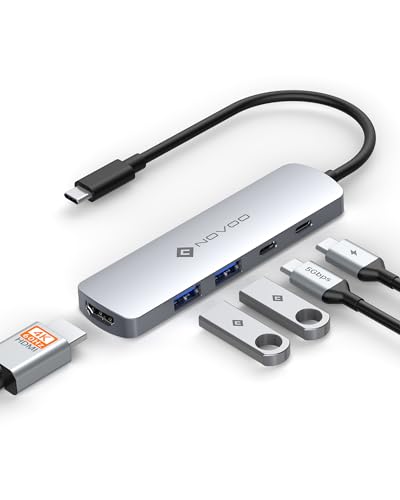 NOVOO 5-in-1 4K@60Hz HDMI USB-C 3.0 ハブ タイプ C アダプター【4K@60Hz HDMI+2*USB-A+USB-C 5Gbps超高速転送+PD100W 急速充電】usb c 変換アダプタ MacBook Pro M1 M2 M3、Rog Ally、 Dell XPS、Surface、Galaxy S24、Xperia 5、iPhone