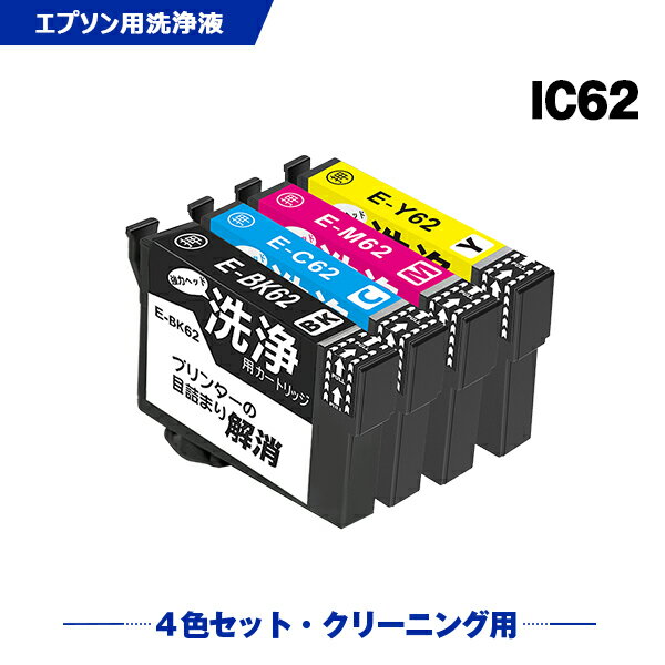 クリーニングカートリッジ IC4CL62 4色セット エプソン用 互換 洗浄カートリッジ プリンター 洗浄液 目詰まり解消 メール便 送料無料 あす楽 対応 (IC62 ICBK62 ICC62 ICM62 ICY62 PX-404A IC 62 PX-504A PX-434A PX-204 PX-205 PX-403A PX-605F PX-675F PX-504AU)