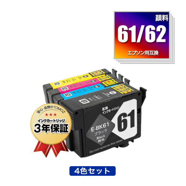 IC4CL6162 顔料 4色セット エプソン 用 互換 インク メール便 送料無料 あす楽 対応 (IC61 IC62 ICBK61 ICC62 ICM62 ICY62 PX-203 IC 61 IC 62 PX-504A PX-503A PX-204 PX-205 PX-603F PX-605F PX-675F PX-504AU PX-605FC3 PX-605FC5 PX-675FC3 PX203 PX504A)