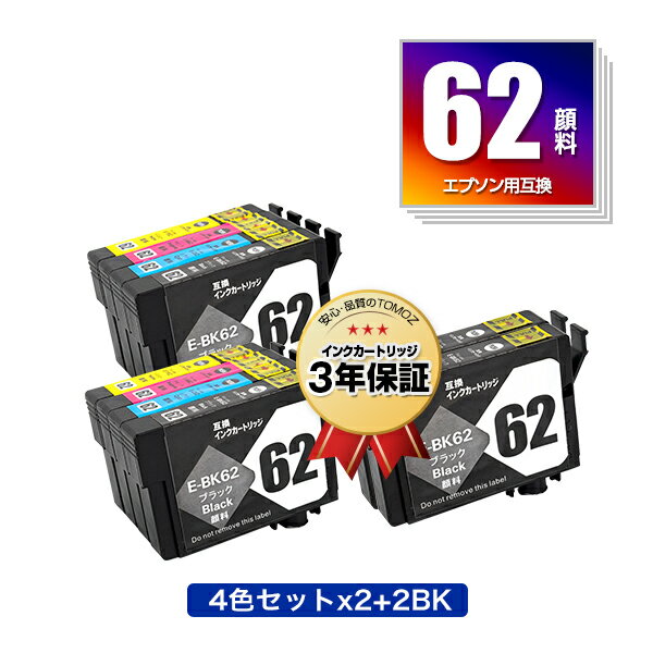 IC4CL62×2 + ICBK62×2 顔料 お得な10個セット エプソン用 互換 インク メール便 送料無料 あす楽 対応 (IC62 ICC62 ICM62 ICY62 PX-404A IC 62 PX-504A PX-434A PX-204 PX-205 PX-403A PX-605F PX-675F PX-504AU PX-605FC3 PX-605FC5 PX-675FC3 PX404A PX504A PX434A)