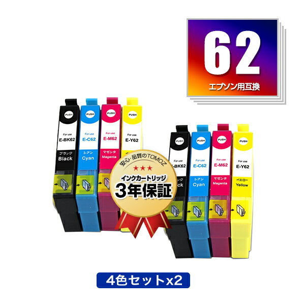 IC4CL62 お得な4色セット×2 エプソン 用 互換 インク メール便 送料無料 あす楽 対応 (IC62 ICBK62 ICC62 ICM62 ICY62 PX-404A IC 62 PX-504A PX-434A PX-204 PX-205 PX-403A PX-605F PX-675F PX-504AU PX-605FC3 PX-605FC5 PX-675FC3 PX404A PX504A PX434A PX204 PX205)