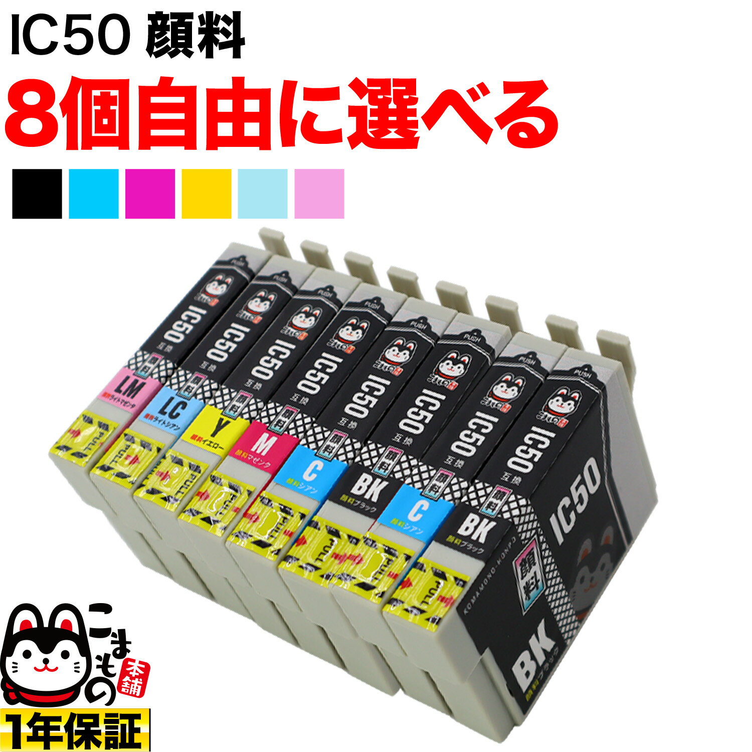 IC6CL50 IC50 ふうせん エプソン用 選べる8個 顔料 (ICLM50 ICBK50 ICC50 ICM50 ICY50 ICLC50) EP-301 EP-302 EP-702A EP-703A EP-704A EP-705A EP-774A EP-801A EP-802A EP-803A EP-803AW EP-804A EP-804AU EP-804AR 互換インク フリーチョイス 自由選択