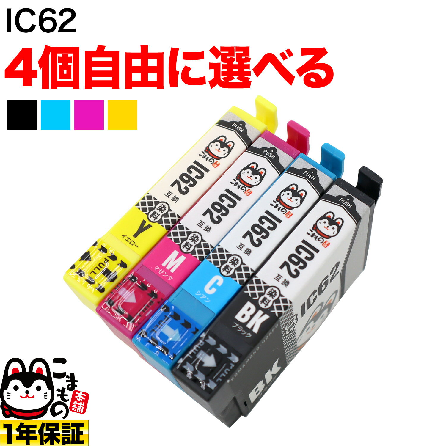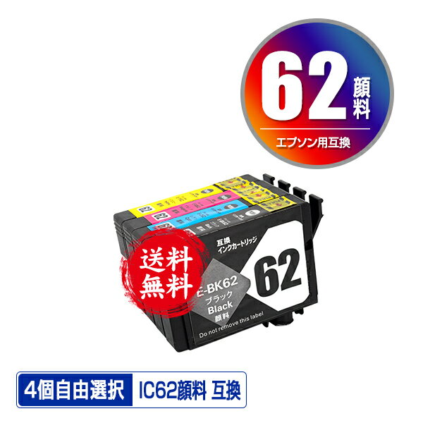 IC4CL62 顔料 4個自由選択 メール便 送料無料 エプソン 用 互換 インク (IC62 ICBK62 ICC62 ICM62 ICY62 PX-404A IC 62 PX-504A PX-434A PX-204 PX-205 PX-403A PX-605F PX-675F PX-504AU PX-605FC3 PX-605FC5 PX-675FC3 PX404A PX504A PX434A PX204 PX205)