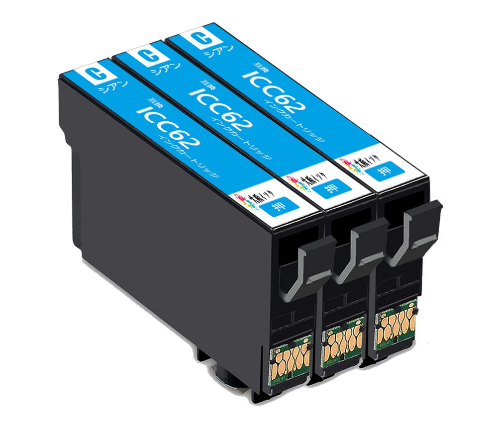 エプソン 互換インクカートリッジ ic62 ICC62 シアンお徳用 3個パック 対応プリンター: PX-203 PX-204 PX-205 PX-403A PX-404A PX-434A PX-503A PX-504A PX-504AU PX-603F PX-605F PX-605FC3 PX-605FC5 PX-675F PX-675FC3 残量表示icチップ付互換インクカートリッジ