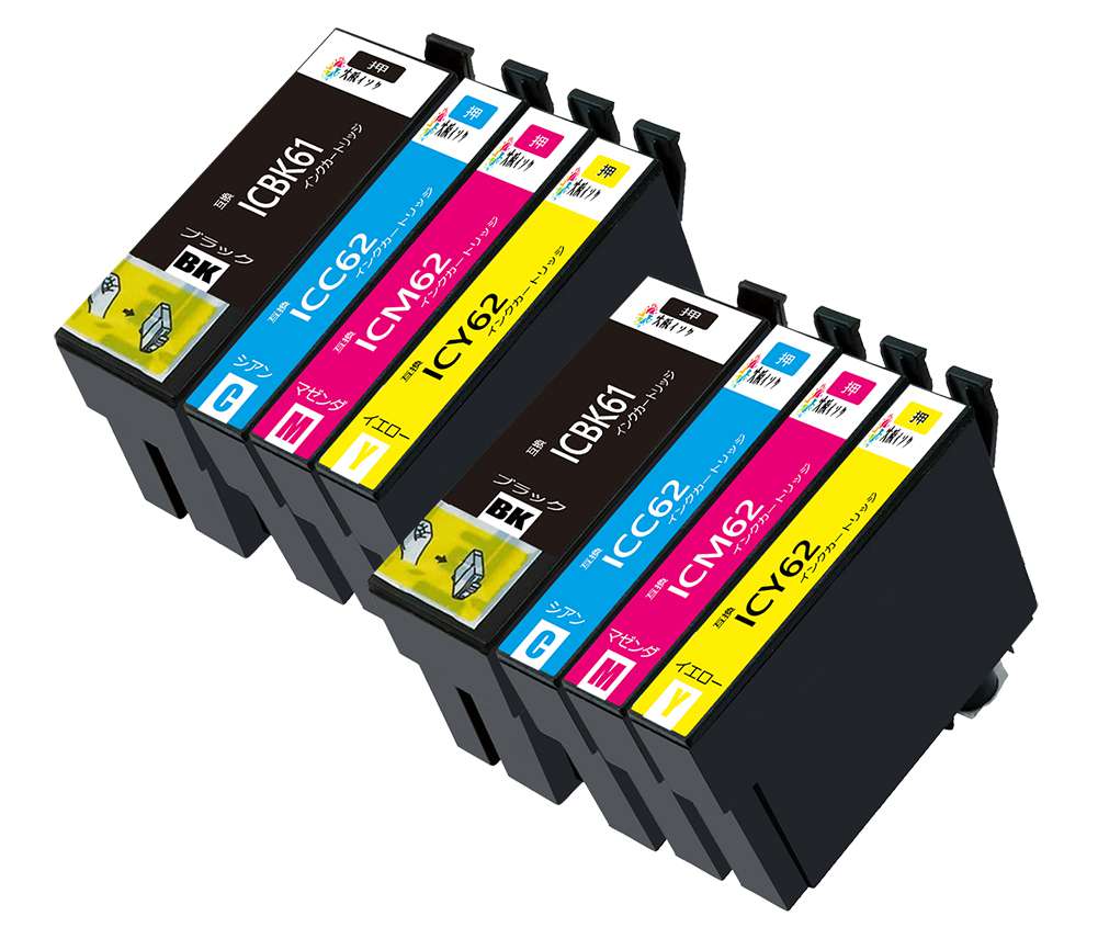 IC4CL6162 顔料 お得な4色セット×2 エプソン 用 互換 インク メール便 送料無料 あす楽 対応 (IC61 IC62 ICBK61 ICC62 ICM62 ICY62 PX-203 IC 61 IC 62 PX-504A PX-503A PX-204 PX-205 PX-603F PX-605F PX-675F PX-504AU PX-605FC3 PX-605FC5 PX-675FC3 PX203 PX504A)