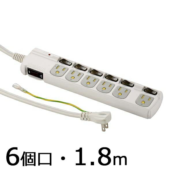 雷ガード・ブレーカー・個別スイッチ付 3Pプラグ対応 節電タップ(6個口/1.8m) (HS-T1259W)