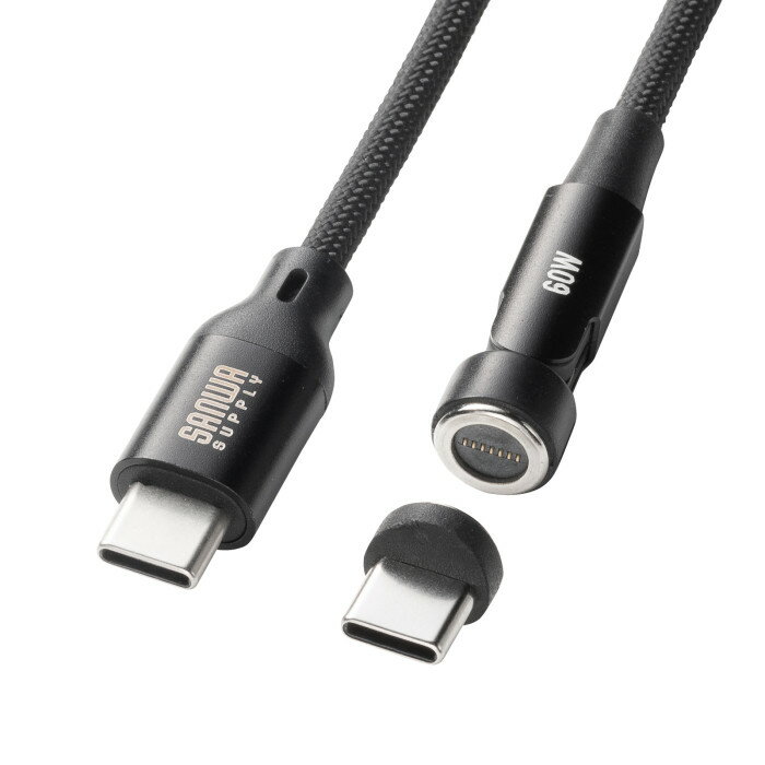 【代引不可】USB2.0 Type-Cケーブル(マグネットコネクタ・540度回転・PD60W・1m) サンワサプライ KU-CCP60MG10BK
