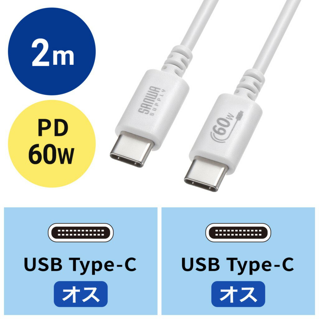 【新品/取寄品/代引不可】USB Type-Cケーブル 2m USB PD60W CtoC USB2.0 充電 データ転送 USB-IF認証品 スマホ タブレット ノートパソコン PCケーブル ホワイト KU-CCP6020W