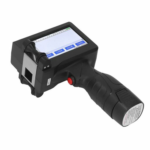 ハンドヘルドプリンター、HDLEDタッチスクリーンポータブルインクジェットプリンター4コアCUP快適なハンドルインクジェットプリンター、プラスチック、金属、ラベル、革用の黒の高接着…