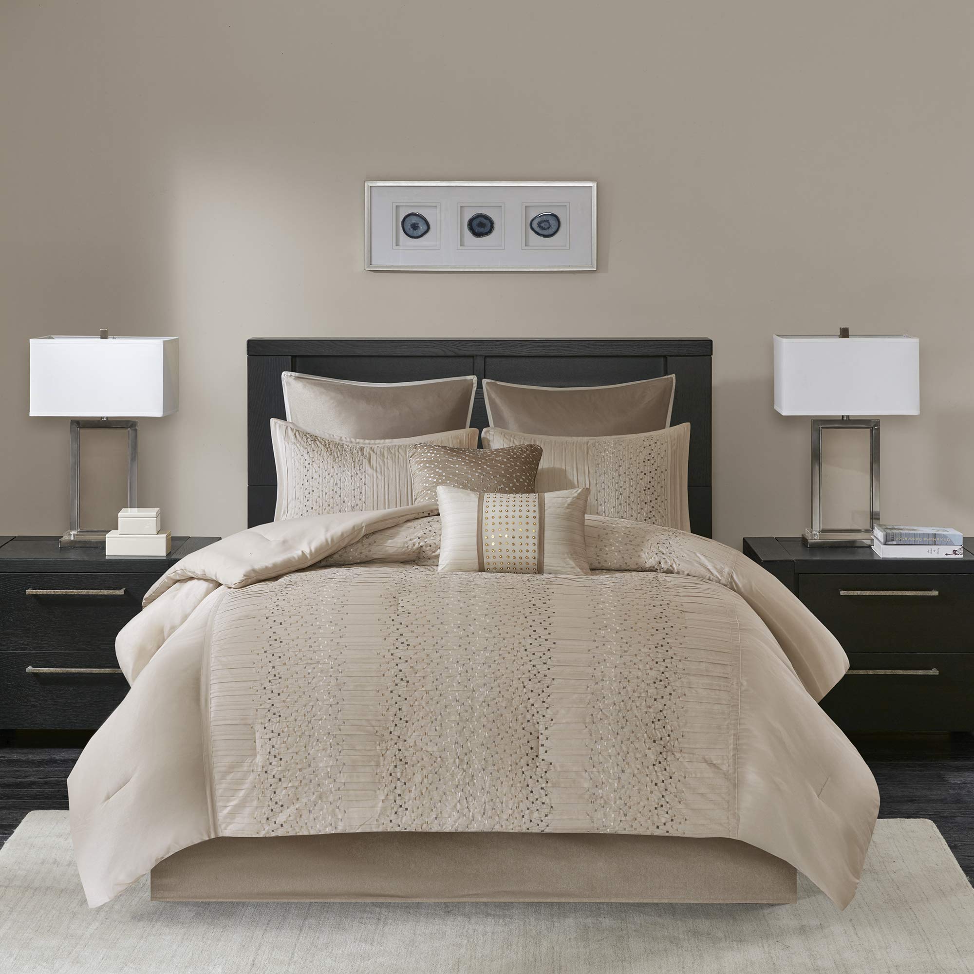 Madison Park Camelia 快適な掛け布団セット - 流行のデザイン オールシーズン 人工羽毛 高級寝具 お揃いの枕カバー付き 装飾枕 キングサイズ (104インチ x 92インチ) ナチュラル8点
