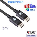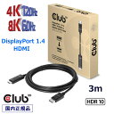 国内正規品 Club3D DisplayPort 1.4 HBR3 (High Bit Rate 3) 8K 60Hz Male/Male 3m 28AWG ディスプレイ ケーブル Cable (CAC-1060)