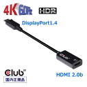 国内正規品 Club3D DisplayPort 1.4 to HDMI 2.0b HDR(ハイダイナミックレンジ)対応 4K 60Hz Active Adapter 変換アダプタ(CAC-1080)