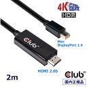 国内正規品 Club3D Mini DisplayPort 1.4 to HDMI 2.0b HDR(ハイダイナミックレンジ)対応 4K 60Hz ディスプレイ 変換アダプタ 2m ケーブル(CAC-1182)