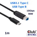 国内正規品 Club3D USB 3.1 Gen2 Type-C to Type-B Cable ケーブル 1M (CAC-1524)