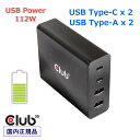 国内正規品 Club3D USB Type A x2 & Type C x2 Power Charger 充電器 112W 出力 USB 4 ポート PD Power Delivery サポート(CAC-1904)