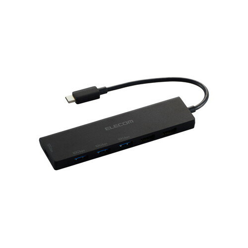 ELECOM (エレコム)USB Type-C ハブ USB3.2 Gen2 ( USB-A ×5 USB-C ×1 ) バスパワー コンパクト 薄型 ケーブル長12cm ブラック