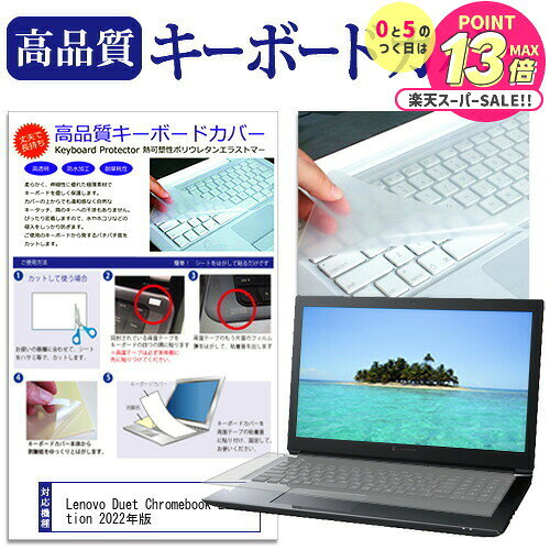 Lenovo Duet Chromebook Education 2022年版 [10.95インチ(2000x1200)] 用 キーボードカバー 極薄 日本製 フリーカットタイプ と クリア 光沢 液晶保護フィルム セット対応機種Lenovo Duet Chromebook Education 2022年版 [10.95インチ(2000x1200)] キーボードカバー特徴・高品質・高機能の日本製アジペート系熱可逆性ポリウレタンエラストマー素材を採用。・帯電防止でホコリやゴミが付着しにくいです。・さらさら感を保ちながら滑りすぎない特殊表面加工。・厚さ0.1mmの極薄仕様ながら防水効果・引裂強度・反発弾性に優れています。・タイピング感を損なわずにキーボードを保護。・高耐摩耗性で新品状態を長く維持します。液晶保護フィルム特徴・鮮やかな映像を実現するクリア光沢仕様。・全光線透過率96%で高い透明感を保持します。・光沢仕上げで映像を鮮明に再現。・汚れ・キズ・ホコリから画面を保護。・タッチパネルやペン入力も快適です。・硬度3Hのハードコート仕様でキズに強く液晶画面を保護します。・気泡除去用ヘラとクリーニングクロス付き。ご購入前の注意点・機器本体は付属しておりません。・キーボードカバーは(350x250mm)のフリーカットタイプです。専用品ではなく汎用品です。・ご自身でカットし、付属の両面テープで貼り付けてご使用ください。・保護フィルムは液晶画面表示領域のみカバーします。画面全体を覆う仕様ではございません。・指紋認証機能には非対応です。・記載された製品名やブランド名は、適合サイズ説明の便宜上使用しており、各社の商標または登録商標です。・当製品は互換品となります。公式メーカーが販売、製造するものではございません。純正品ではないことをご了承ください。ブランドメディアカバーマーケットは、PC・タブレット・スマートフォンなどの各種機器向け保護フィルムを製造・販売する国内ブランドです。豊富な機種対応と、法人・教育機関への導入実績を誇ります。品質保証液晶保護フィルムは消耗品のため、未使用(貼り付け前・保護シート未剥離)の状態に限り返品・交換を承っております。商品到着時、ご注文と異なる商品が届いた場合や、初期不良などがある場合、1週間以内にメールにてご連絡ください。商品のお取り換え、もしくはご返金をさせていただきます。詳しくは返品ポリシーをご覧ください。Lenovo Duet Chromebook Education 2022年版 [10.95インチ(2000x1200)] 用の極薄0.1mmキーボードカバーと高い透過率クリア光沢液晶保護フィルムのセット。タイピング感を損なわず防塵・防水し、美しい映像を保ちながら画面を保護します。法人・教育機関への導入実績豊富な国内ブランド【メディアカバーマーケット】キーボードカバー フィルム■対応機種Lenovo Duet Chromebook Education 2022年版 [10.95インチ(2000x1200)]●キーボードカバー特徴素材は、高品質・高機能・日本製アジペート系熱可逆性ポリウレタンエラストマー。装着した状態では透明感も高く装着していることを意識せずにご使用いただけます。特殊表面加工により、指先がすべり過ぎず・さらさら感は損なわない感覚です。厚さはわずか0.1mmの極薄ながら、優れた防水効果、引裂強度、反発弾性を発揮。●液晶保護フィルム特徴透過率96%以上で液晶の画質をそのままクリアに表示します。しっかり保護する硬度 3Hのハードコート仕様です。※ご購入前の注意点※キーボードーカバーはフリーカットタイプで、ご自身でカットして、付属の両面テープで貼り付けて御利用いただくものになります。キーの凹凸には対応していないフラットタイプです。液晶保護フィルムは、液晶画面のみをカバーする仕様です。フルフラット画面の画面全体をカバーする仕様ではございません。ポインティングスティック(トラックパッドなど)がある機種では、キーボードーカバーを付けることでこの機能は多少使いづらくなります。キーボード カバー シート マルチカバー 防水 フリー フリーカット ほこり 埃 防塵 フィルム 光沢