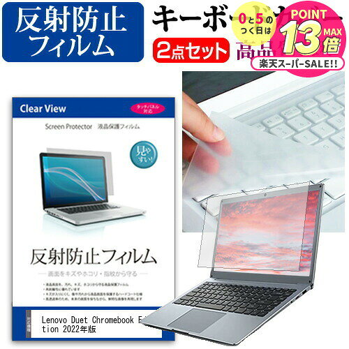 Lenovo Duet Chromebook Education 2022年版 [10.95インチ(2000x1200)] 用 キーボードカバー 極薄 日本製 フリーカットタイプ と 反射防止 液晶保護フィルム セット対応機種Lenovo Duet Chromebook Education 2022年版 [10.95インチ(2000x1200)] キーボードカバー特徴・高品質・高機能の日本製アジペート系熱可逆性ポリウレタンエラストマー素材を採用。・帯電防止でホコリやゴミが付着しにくいです。・さらさら感を保ちながら滑りすぎない特殊表面加工。・厚さわずか0.1mmの極薄仕様で防水性・引裂強度・反発弾性を発揮。・キータッチの良さを損なわずにキーボードを保護します。・高耐摩耗性で長期間新品状態を保持。液晶保護フィルム特徴・反射防止(ノングレア)加工で光の映り込みを軽減します。・蛍光灯や太陽光下でも見やすい画面表示を実現。・硬度3Hのハードコート仕様でキズに強い!・自然な発色と快適な視認性を両立します。ご購入前の注意点・機器本体は付属しておりません。・キーボードカバーは(350x250mm)のフリーカットタイプです。専用品ではなく汎用品です。・ご自身でカットし、付属の両面テープで貼り付けてご使用ください。・保護フィルムは液晶画面表示領域のみをカバーします。 画面全体を覆う仕様ではございません。・指紋認証機能には非対応です。・記載された製品名やブランド名は、適合サイズ説明の便宜上使用しており、各社の商標または登録商標です。・当製品は互換品となります。公式メーカーが販売、製造するものではございません。純正品ではないことをご了承ください。ブランドメディアカバーマーケットは、PC・タブレット・スマートフォンなどの各種機器向け保護フィルムを製造・販売する国内ブランドです。豊富な機種対応と、法人・教育機関への導入実績を誇ります。品質保証液晶保護フィルムは消耗品のため、未使用(貼り付け前・保護シート未剥離)の状態に限り返品・交換を承っております。商品到着時、ご注文と異なる商品が届いた場合や、初期不良などがある場合、1週間以内にメールにてご連絡ください。商品のお取り換え、もしくはご返金をさせていただきます。詳しくは返品ポリシーをご覧ください。Lenovo Duet Chromebook Education 2022年版 [10.95インチ(2000x1200)] 用の極薄0.1mmキーボードカバーと反射防止液晶保護フィルムのセット。タイピング感を損なわず、防塵・防水性能と視認性向上を両立します。法人・教育機関への導入実績豊富な国内ブランド【メディアカバーマーケット】キーボードカバー フィルム■対応機種Lenovo Duet Chromebook Education 2022年版 [10.95インチ(2000x1200)]●キーボードカバー特徴素材は、高品質・高機能・日本製アジペート系熱可逆性ポリウレタンエラストマー。装着した状態では透明感も高く装着していることを意識せずにご使用いただけます。特殊表面加工により、指先がすべり過ぎず・さらさら感は損なわない感覚です。厚さはわずか0.1mmの極薄ながら、優れた防水効果、引裂強度、反発弾性を発揮。●液晶保護フィルム特徴周囲の明かり(蛍光灯や太陽光)の映り込みを抑え、画面を見やすくします。しっかり保護する硬度 3Hのハードコート仕様です。※ご購入前の注意点※キーボードーカバーはフリーカットタイプで、ご自身でカットして、付属の両面テープで貼り付けて御利用いただくものになります。キーの凹凸には対応していないフラットタイプです。液晶保護フィルムは、液晶画面のみをカバーする仕様です。フルフラット画面の画面全体をカバーする仕様ではございません。ポインティングスティック(トラックパッドなど)がある機種では、キーボードーカバーを付けることでこの機能は多少使いづらくなります。キーボード カバー シート マルチカバー 防水 フリー フリーカット ほこり 埃 防塵 フィルム