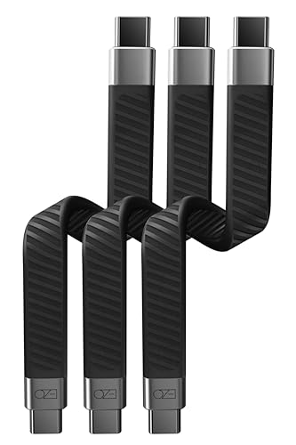 Ezo® Flex USB-C to USB-C 短いケーブル 13.5cm 平形 高速データ転送20Gbps 高速PD充電100W USBC - USBC Type-C to Type-C フラットケーブル Thunderbolt 3 / 4 対応 (タイプ C-C)