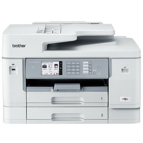 [ブラザー A3対応インクジェット複合機 ファーストタンク ホワイト MFC-J7600CDW [MFCJ7600CDW]] の商品説明●大容量インクカートリッジ対応の3段トレイA3複合機 ・カラー約5,000枚、ブラック約6,000枚の大容量インクカートリッジを搭載。インクの交換や購入の手間を軽減することができます。●インク切れのリスクを大幅に軽減サブタンク搭載 ・インクをカートリッジから本体のサブタンクに注入するシステムを採用。カートリッジが空になっても約200枚の印刷が可能で、インクの購入を忘れたときも安心です。※ISO/IEC24711準拠の目安枚数。使用状況により異なります。●インク残量を枚数で表示 ・ISOベースまたは使用状況に合わせた残りの枚数表示に対応しています。 ・交換の目安がわかりやすいので、突然のインク切れに備えることができます。●ランニングコスト ・カラー約4.1円/枚、モノクロ約0.8円/枚。 ・印刷コストの削減に貢献します。●高速ファーストプリント ・1枚目の印刷時間がカラー約4.6秒、モノクロ約4.4秒と大幅に高速化。 ・出力の待ち時間を短縮し、ストレスなく印刷することができます。●高速プリント ・1分間にA4カラー約30ページ、A4モノクロ約30ページという高速印刷を実現。オフィスの作業効率アップに貢献します。●高耐久 ・インクジェットで約30万ページまたは7年間の高耐久を実現。 ・廃インクパッドの交換も必要ありません。●前面操作で便利なフロントオペレーション ・インク交換や用紙補充を本体前面で完結できるフロントオペレーションを採用。スペースが限られている場所にも設置できる設計です。●最大50枚対応のADFで大量コピーが可能 ・最大50枚まで連続コピーが可能なADFを搭載。業務の効率化を図れます。●高画質プリント ・顔料インクを採用し、文字やグラフがくっきり鮮明で、ビジネス文書に適しています。●大容量給紙トレイ ・1段250枚の大容量カセット3段、最大100枚の多目的トレイ搭載。 ・サイズの異なる用紙を同時にセットできるので用紙交換の手間が省けます。●自動ノズルチェック機能 ・印字した書類にスジが入るなど印字不良の原因となるプリントヘッドのエラーを検知し、自動で修復・メンテナンスを行います。そのため、印字不良が発生する頻度を抑え、クリーニングの手間を省くことができ、生産性を保つことに貢献します。さらに、プリントミスによるインクや用紙のムダを抑えます。[ブラザー A3対応インクジェット複合機 ファーストタンク ホワイト MFC-J7600CDW [MFCJ7600CDW]]のスペック●最高解像度:1200×4800dpi●インク:4色(独立型)●用紙サイズ:L判〜A3●最大給紙容量:850枚(1段250枚×3段、背面多目的トレイ100枚)●対応OS ・Windows:11、10、8.1、7sp1、Server2022、Server2019、Server2016、Server2012/2012R2、Server2008/2008R2 ・MAC:OS v10.15.X〜●カラー液晶モニター:3.5型TFT(タッチパネル)●ネットワーク対応:有線・無線 ※Wi-Fiと有線LANは同時使用不可●インターフェイス(PC用):Hi-Speed USB2.0※1、有線LAN(10Base-T/100Base-TX)※2、無線LAN(IEEE 802.11a/b/g/n)※2※1.USBについては、各対応OSのプレインストールモデルに対応。また、各対応OSのプレインストールモデルからのアップグレード環境にも対応しています。Hi-Speed USB2.0でのご使用は、パソコン側がHi-Speed USB2.0を標準装備している必要があります。また、Hi-Speed USB2.0インターフェイスはUSB1.1の完全上位互換ですので、パソコン側のインターフェイスがHi-Speed USB2.0に未対応でも従来のUSB1.1での転送速度にて動作可能です。2.有線/無線ネットワークの両方に対応している製品は、接続は排他的(有線/無線のどちらか一方)になります。対応認証方式は、オープンシステム認証、共有キー認証、WPA-PSK/WPA2-PSKです。対応暗号方式はWEP(64/128ビット)/TKIP/AESです。WPSを使う場合は、アクセスポイントが対応している必要があります。 ●プリントスピード(片面):A4カラー/約30ipm(最速32枚/分)、A4モノクロ/約30ipm(最速35枚/分)●コピー速度(片面):A4カラー/約16ipm、A4モノクロ/約25ipm●対応メディア:USBフラッシュメモリー●対応インクタンク:LC417XLシリーズ●自動両面印刷:○●BD・DVD・CDレーベルプリント:×●フチなし印刷:〇●拡大・縮小:〇●自動原稿送り(ADF):〇(最大50枚)●フラットベッド:〇●コピー機能:○●スキャナー機能:○●FAX機能:〇●USBケーブル同梱:×●寸法:W57.6×H44.5×D47.7cm(突起部を含まず)●質量:約27.5kg(消耗品含む)●主な付属品:スターターインクカートリッジ、取扱説明書、CD-ROM、電話機コード、A4用紙(普通紙)、紙詰まり解消シート、ローラークリーニングキット、保証書他印刷物●※詳細はメーカーHPをご確認ください。○初期不良のみ返品可