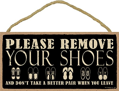 【中古】【未使用・未開封品】(SJT94375) Please remove your shoes and don't take a better pair when you leave 5 x 10 wood sign plaque by SJT.
